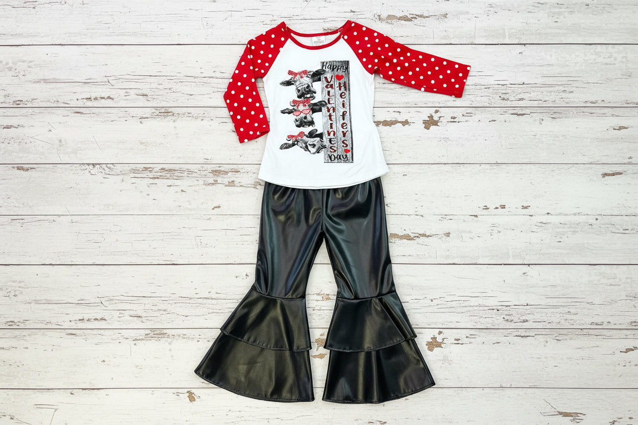 Spread the love this Valentine's Day with our adorable MOOOO Happy Valentine tee! Featuring charming cow designs and cheerful polka dot sleeves, this playful outfit comes complete with decorative leather bells that add an extra touch of whimsy. Perfect for cow lovers and Valentine's enthusiasts alike, this fun ensemble brings personality and charm to any occasion. Rock the quirky style with confidence and let your inner cow shine—it's a moo-velous way to celebrate!
